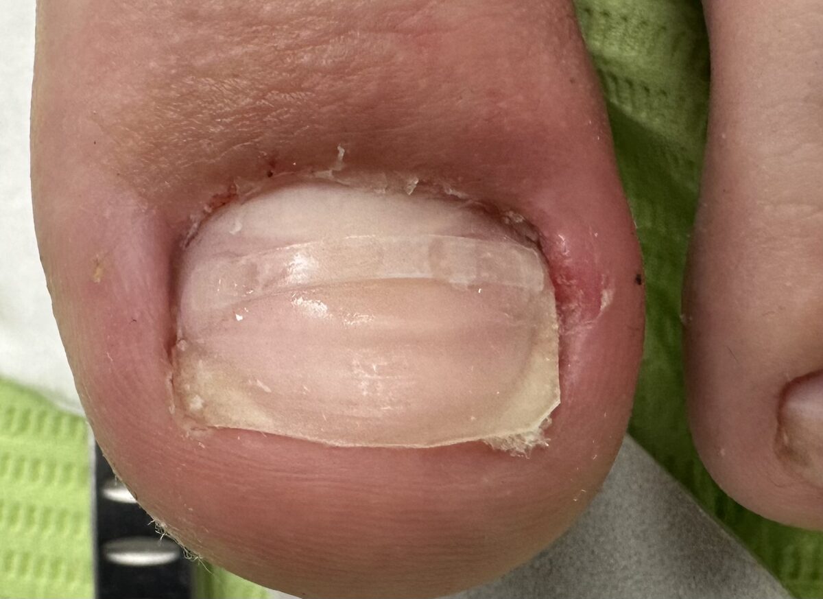 The procedure relieves pressure on the nail and supports proper nail growth, helping to avoid surgical removal and the risk of infection. With this method, professionals can help more people in a simple and cost-effective way.It can also be used in cases of infected nails, since the surface of the nail remains free.Repeat as necessary.
